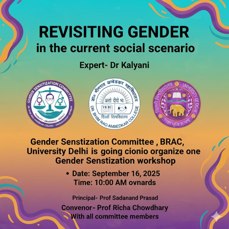 The Gender Sensitization and Women Development Committee of BRA College successfully fulfilled its mandate for the academic year 2025–26 through a balanced approach of awareness-building, skill development, community outreach, and institutional collaboration. By partnering with organizations such as Bisleri, Whisper, Action India, Asha Kiran NGO, and the Delhi Police and working under the framework of the Ministry of Women and Child Development, the committee expanded its reach from campus-level engagement to meaningful social impact. These initiatives collectively contributed to strengthening gender sensitivity, promoting women’s empowerment, encouraging environmental responsibility, and nurturing socially conscious citizens, in alignment with national priorities and institutional values.